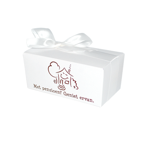 • Omschrijving : ballotin 500g metallics crystal 'met pensioen? geniet ervan' - 134x76/70mm