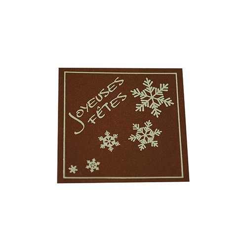 Omschrijving : etiketten 4x4cm bruin 'Joyeuses Fêtes' (500 st)