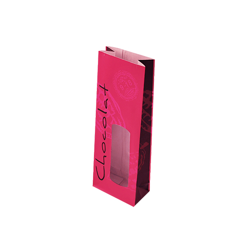 Omschrijving : Gevoerde blokbodemzakjes 70+40/200mm fuchsia/chocolat