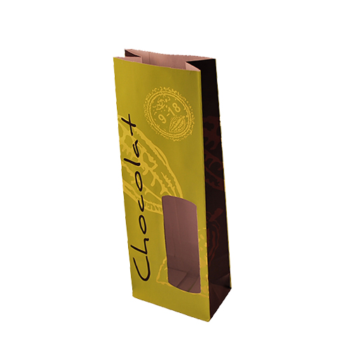 Omschrijving : Gevoerde blokbodemzakjes 85+50/240mm groen/chocolat