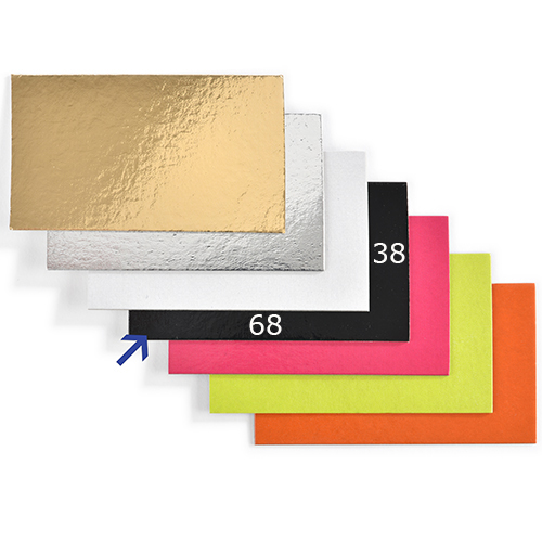 Omschrijving : zwart karton 68x38mm voor blokbodemzak 70x40/220mm - 200 stuks