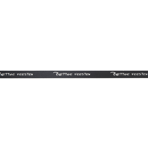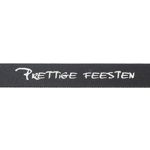 Omschrijving : prestige 15mm/100m "Prettige feesten" col. 233 zwart+zilver