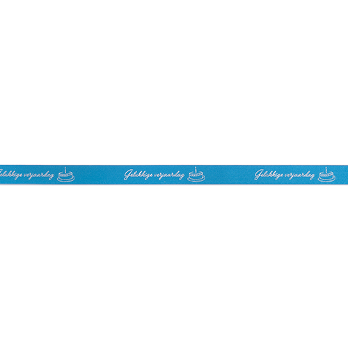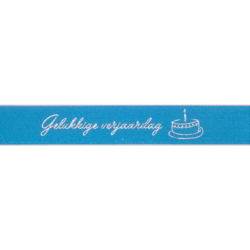 prestige 15mm/100m "Gelukkige verjaardag" col. 318 turquoise+zilver