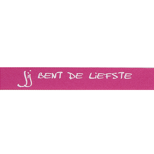 Omschrijving : prestige 15mm/100m "Jij bent de liefste" col. 210 rose vif+wit