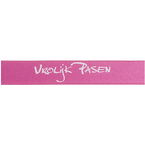 Omschrijving : prestige 15mm/100m "Vrolijk Pasen" col. 210 rose vif+wit