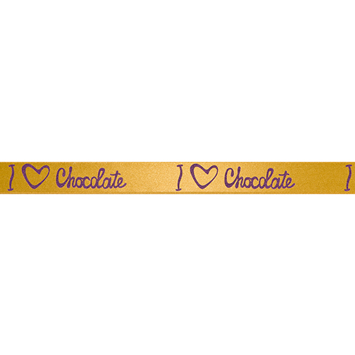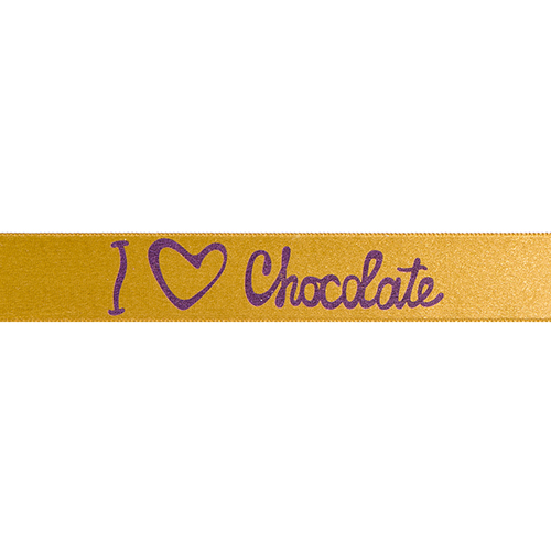 Omschrijving : prestige 25mm/100m "I love chocolate" col. 249 goud+paars