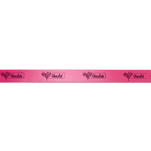 Omschrijving : prestige 25mm/100m "(kader) love chocolate" col. 210 rose vif+zwart