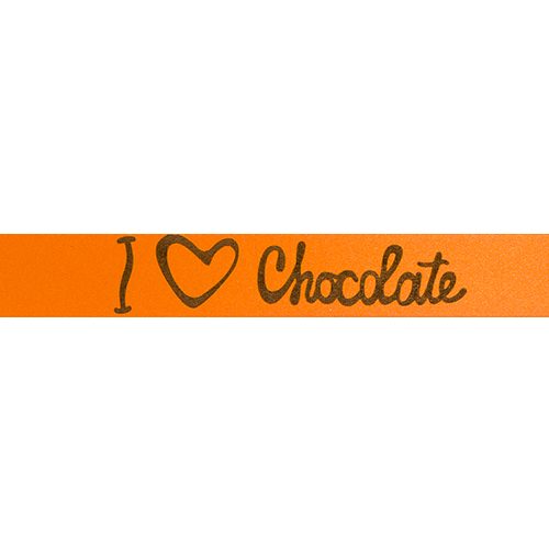 Omschrijving : ribanbel 15mm/100m "I love chocolate" DS+brons