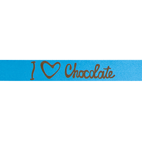 ribanbel 15mm/100m "I love chocolate" turquoise+brons