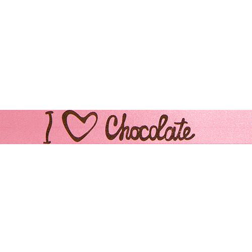 Omschrijving : ribanbel 25mm/100m "I love chocolate" dragée+brons