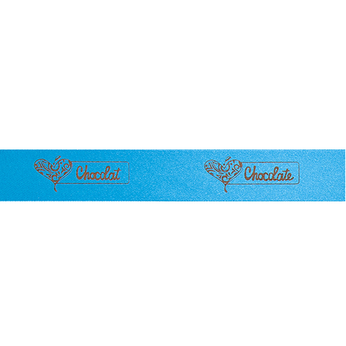 Omschrijving : ribanbel 25mm/100m "(kader) love chocolate" turquoise+brons