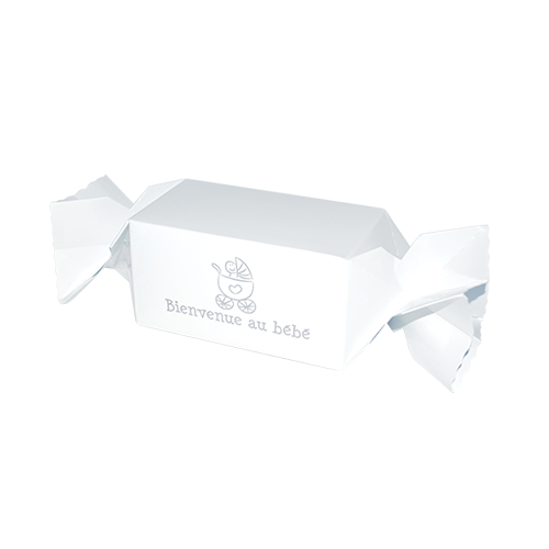 Omschrijving : toffee-doos 250g 'bienvenue au bébé' 130x70/70mm