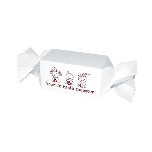 Omschrijving : toffee-doos 250g 'voor de beste meester' 130x70/70mm