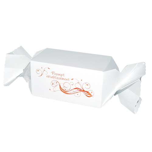 Omschrijving : toffee-doos 500g 'prompt rétablissement' 160x85/85mm