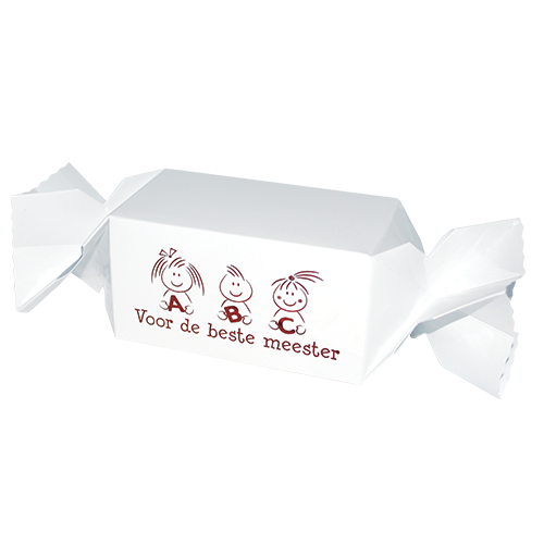 Omschrijving : toffee-doos 500g 'voor de beste meester' 160x85/85mm