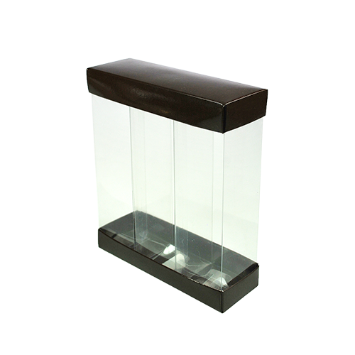 Column 3 H180 CHOCOLAT laqué 3x50x50/180mm Set bestaande uit: *3x transparante vouwdoos 50x50/h180mm (plano geleverd) *2x top/bottom voor de column in karton van 155x52/h23mm (plano geleverd) kleur: CHOCOLAT laqué Dit produkt wordt verkocht per 50 stuks Personalisatie is mogelijk vanaf 800 stuks op de top/bottom