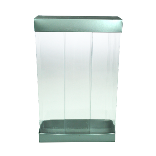 Column 3 H245 duo 'MONACO' zilver 3x50x50/245mm Set bestaande uit: *3x transparante vouwdoos 50x50/h245mm(plano geleverd) *2x top/bottom voor de column in karton van 155x52/h23mm (plano geleverd) kleur: duo MONACO zilver Dit produkt wordt verkocht per 50 stuks Personalisatie is mogelijk vanaf 800 stuks op de top/bottom