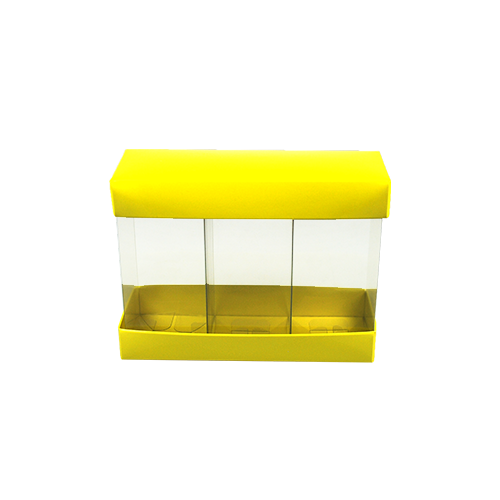 Column 3 H115 JAUNE laqué 3x50x50/115mm Set bestaande uit: *3x transparante vouwdoos 50x50/h115mm (plano geleverd) *2x top/bottom voor de column in karton van 155x52/h23mm (plano geleverd) kleur: JAUNE laqué Dit produkt wordt verkocht per 50 stuks Personalisatie is mogelijk vanaf 800 stuks op de top/bottom