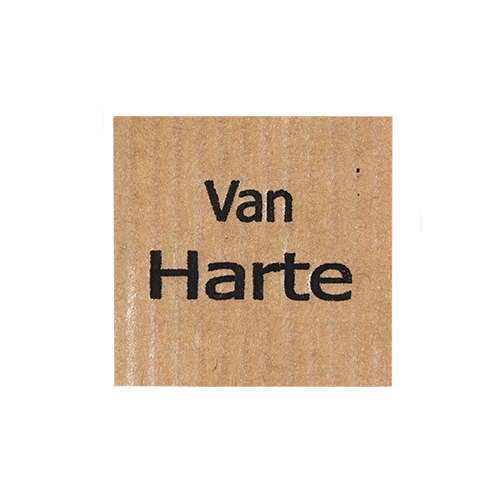 Omschrijving : etiketten 3x3cm 'Van harte' Kraft + Black (500st)